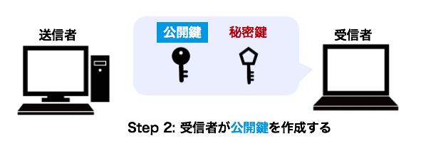 受信者あてにデータを送る場合は、秘密鍵とペアになる公開鍵でデータを暗号化し送信してもらいます。では、公開鍵を作成してみましょう。